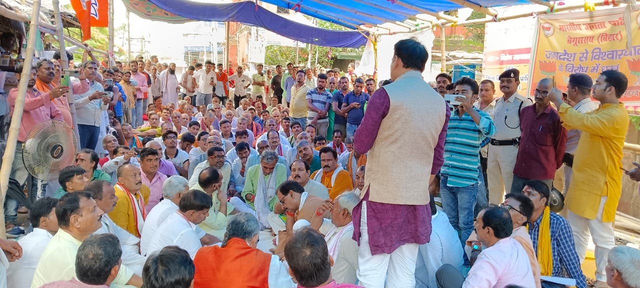 धरना को संबोधित करते हुए बछवारा से भारतीय जनता पार्टी के विधायक सुरेंद्र मेहता ने कहा कि नितीश कुमार अटल बिहारी बाजपेई के द्वारा बनाए गए। जिन्होंने भारतीय जनता पार्टी के दम पर शोहरत प्राप्त किया किंतु उन्हें यह शोहरत हजम नहीं हो सका। सरकार द्वारा दी गई योजनाओं एवं स्थानीय स्तर पर भारतीय जनता पार्टी के एक-एक विधायक के कठिन परिश्रम से आज बिहार में विकास को गति मिल रही थी। किंतु उन्होंने भ्रष्टाचार एवं गुंडाराज को पुनः प्रश्रय एवं संरक्षण देने का काम किया है। जिसे बिहार की जनता को भुगतना पड़ेगा एवं बिहार के विकास में भी अवरोध पैदा होगा। बिहार की जनता अब इनके चरित्र को भलीभांति समझ गई है एवं भविष्य में इनका कोई वजूद बिहार की राजनीति में नहीं बच पाएगा।