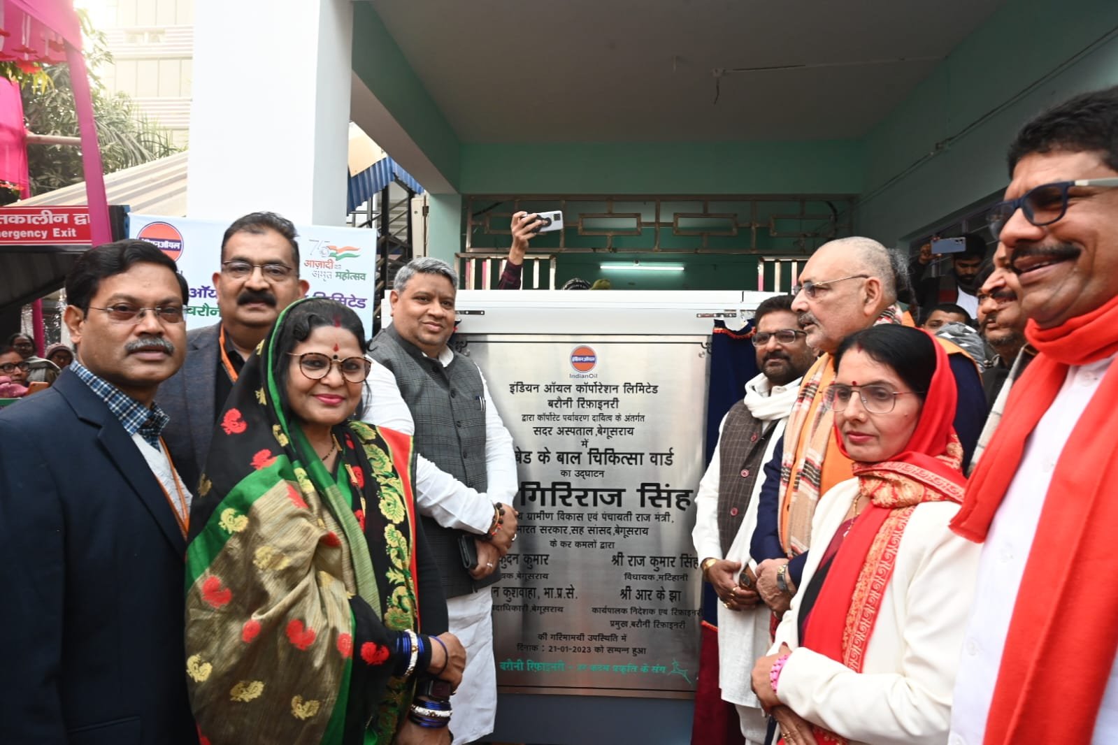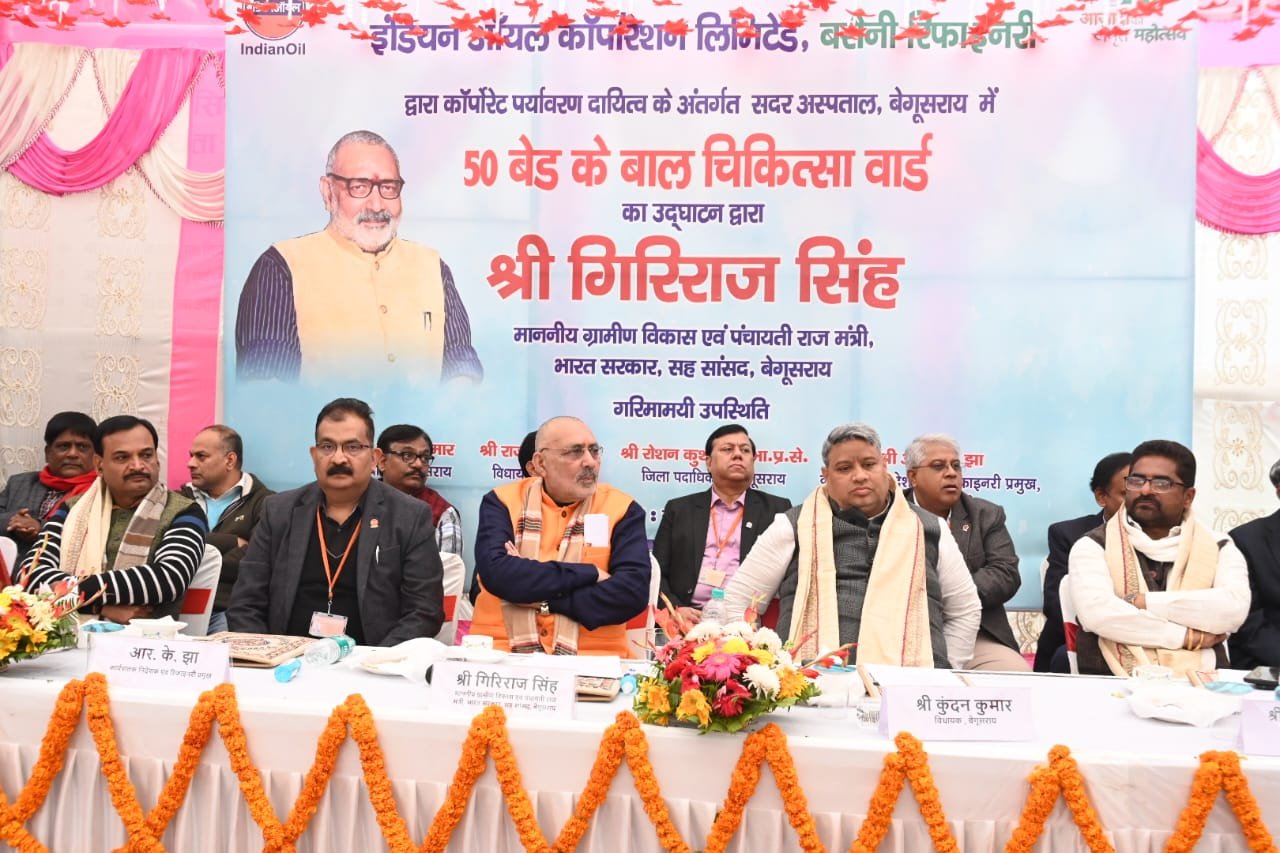 सदर अस्पताल बेगूसराय में ग्रामीण विकास एवं पंचायती राज मंत्री, भारत सरकार सह सांसद, बेगूसराय गिरिराज सिंह ने इंडियन ऑयल, बरौनी रिफ़ाइनरी द्वारा निर्मित 50 बेड के बाल चिकित्सा वार्ड का उद्घाटन कुन्दन कुमार, विधायक, बेगूसराय, श्री राज कुमार सिंह, विधायक, मटिहानी, श्री आर के झा, कार्यपालक निदेशक एवं रिफ़ाइनरी प्रमुख, बरौनी रिफ़ाइनरी, श्रीमती पिंकी देवी, मेयर, श्रीमती अनीता राय, उप मेयर, डॉ. प्रमोद कुमार, सिविल सर्जन तथा अन्य जनप्रतिनिधियों की उपस्थिति में किया।