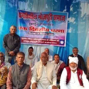 भोजपुरी भाषा को संविधान की आठवीं अनुसूची में शामिल करने को लेकर दिया गया धरना