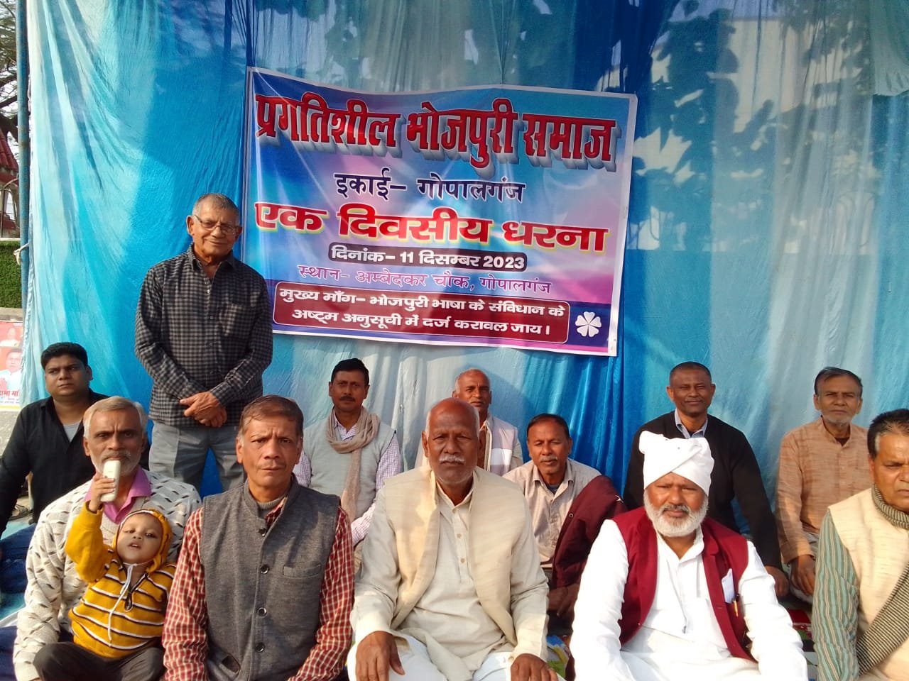 गोपालगंज जिला मुख्यालय अंबेडकर चौक पर प्रगतिशील भोजपुरी समाज द्वारा भोजपुरी भाषा को संविधान की आठवीं अनुसूची में शामिल करने और भोजपुरी भाषा को संवैधानिक मान्यता देने के लिए एक दिवसीय धरना दिया गया।