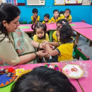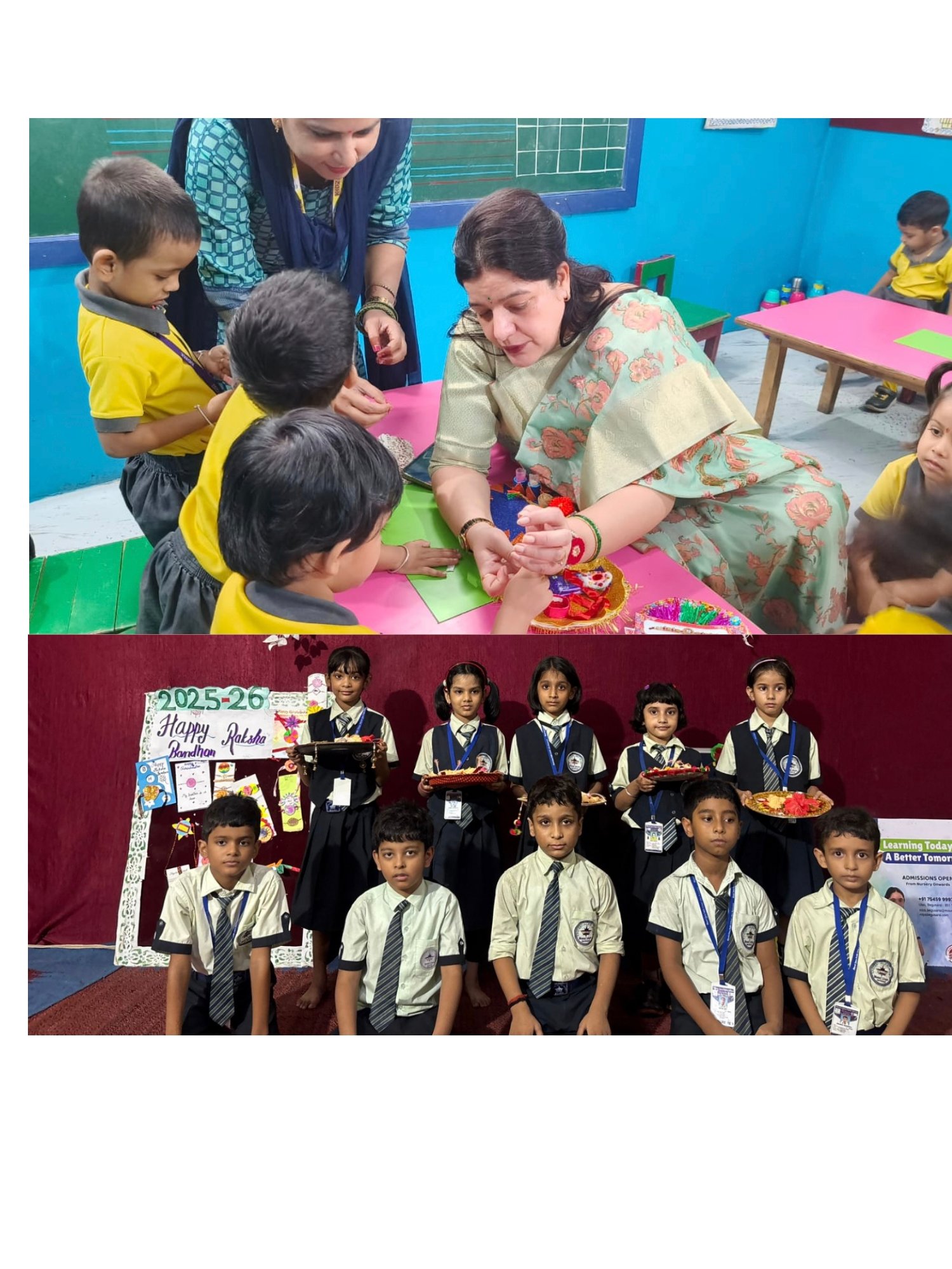 इसके अंतर्गत बच्चों ने राखी सजावट, थाल सजावट और निबंध लेखन प्रतियोगिता में बढ़ चढ़कर भाग लिया। वहीं दूसरी ओर बच्चों ने एक दूसरे की कलाइयों पर राखी भी बांधे।