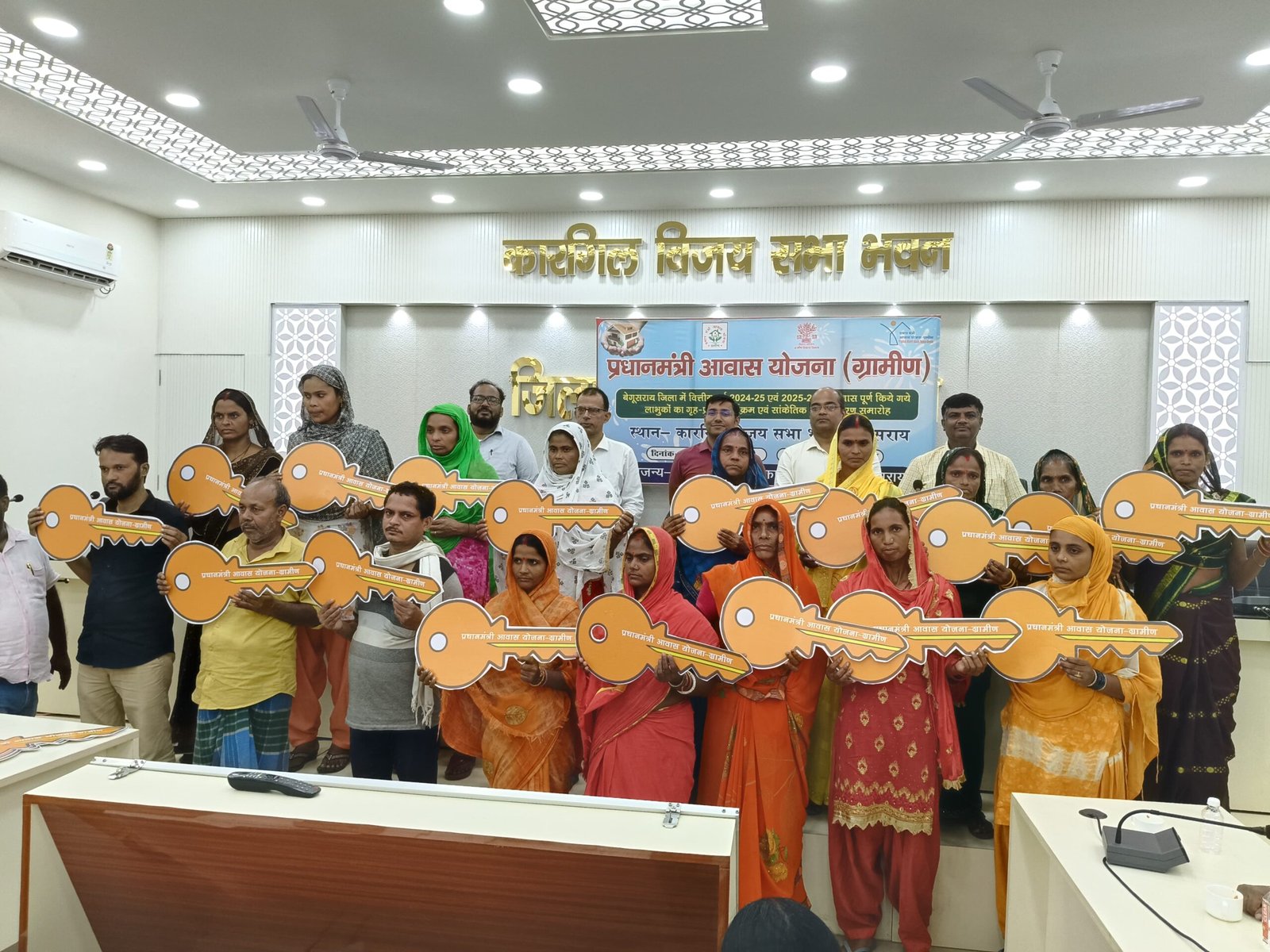 इस अवसर पर सहायक समाहर्ता श्री अजय यादव, निदेशक DRDA बेगूसराय श्री विवेक कुमार, प्रखंड विकास पदाधिकारी बेगूसराय, वीरपुर सहित अन्य आवास कर्मी एवं लाभुक उपस्थित थे।