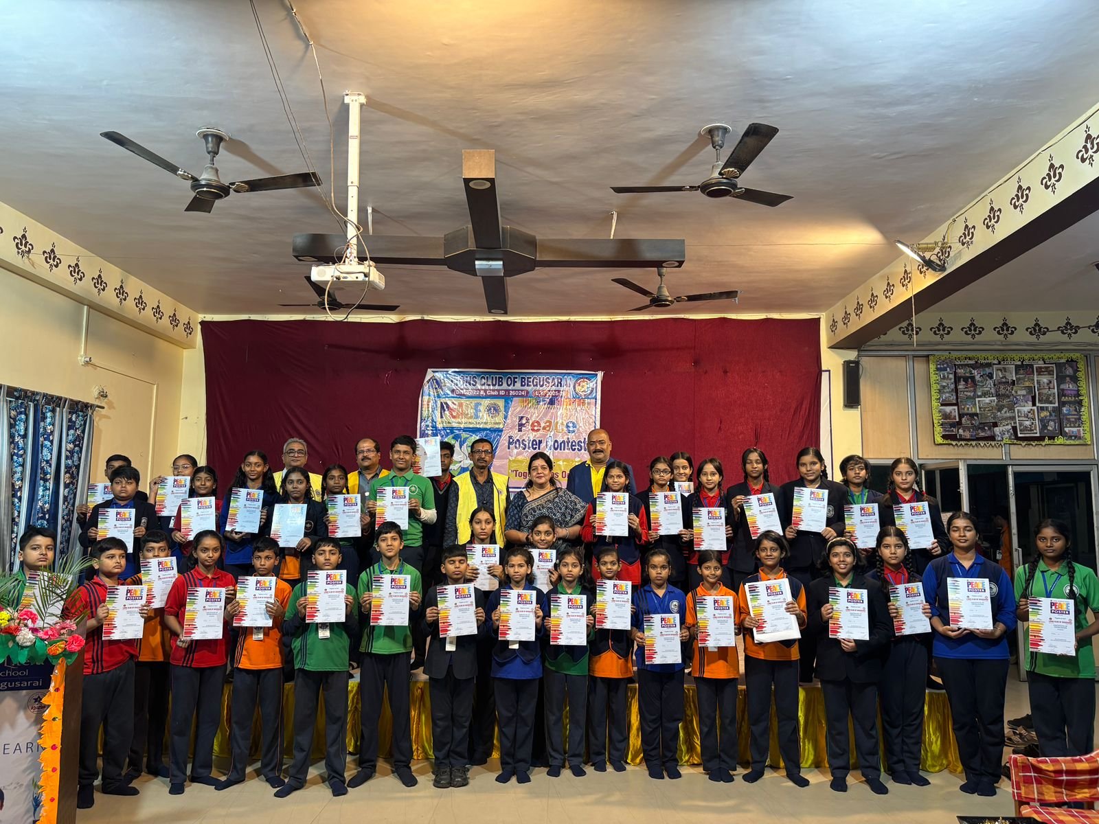 इसके बाद विद्यालय परिसर में लायंस क्लब ऑफ बेगूसराय की ओर से Peace Poster Contest 2025 का आयोजन किया गया, जिसकी थीम थी — “Together as One”।