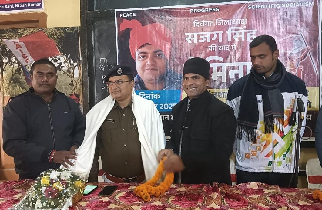 संबोधित करते हुए एआईएसएफ के राष्ट्रीय सचिव अमीन हमजा ने कहा कि हमारे संगठन के दिवंगत जिला अध्यक्ष सजग सिंह संगठन केलिए एक स्तंभ के रूप में थे जिन्हें कभी भुलाया नहीं जा सकता उनको हमारा संगठन कभी नहीं भूल सकता। वह किसी भी प्रकार के नशा के बिल्कुल विरोधी थे,उनके सपने को साकार करने के लिए बेगूसराय की नई पीढ़ियों को नशा से दूरी बनाने और रोक लगाने के लिए संकल्पित होना पड़ेगा। इस मामले में बेगूसराय अनुमंडल पुलिस पदाधिकारी के कार्रवाई को हम लोग स्वागत करते हैं।