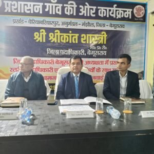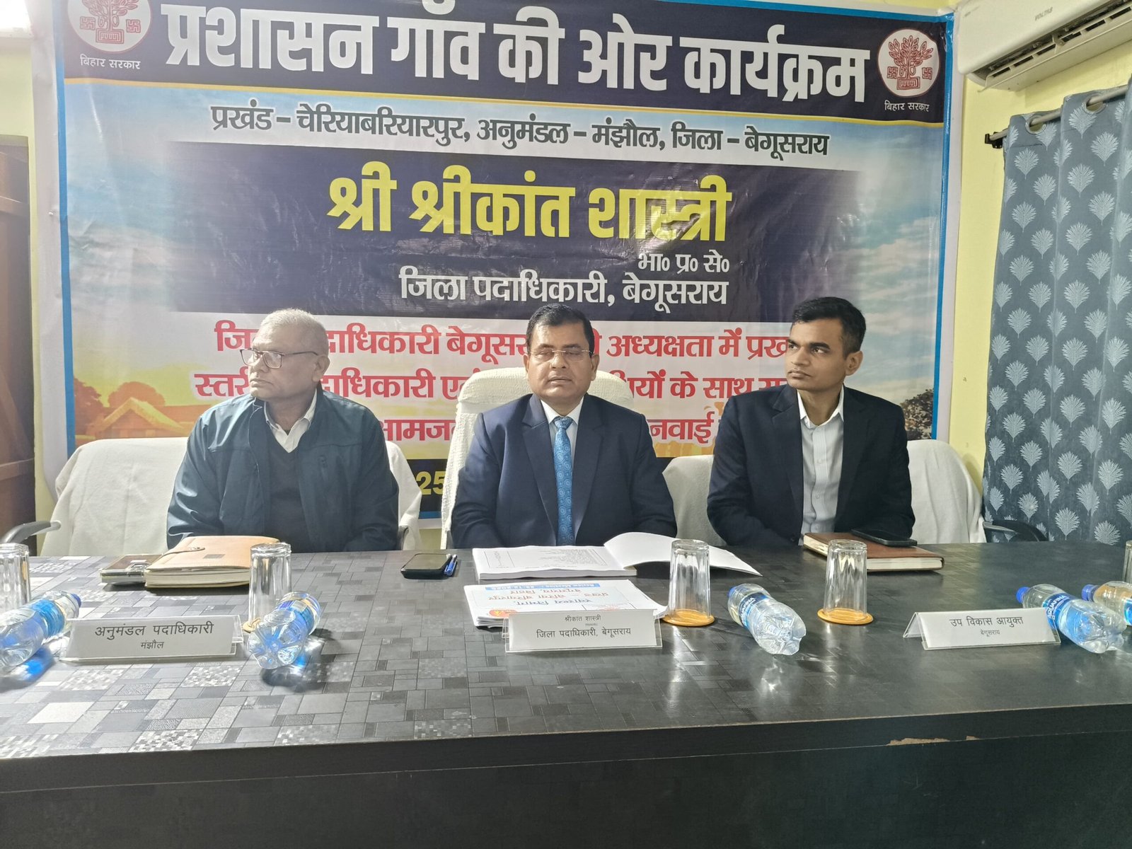 जिला पदाधिकारी, बेगूसराय श्रीकांत शास्त्री द्वारा प्रशासन गांव की ओर कार्यक्रम के तहत चेरियाबरियारपुर प्रखंड-सह-अंचल कार्यालय का निरीक्षण एवं जनसुनवाई कार्यक्रम का आयोजन किया गया। इस अवसर पर जिला पदाधिकारी द्वारा सभी जिला स्तरीय एवं प्रखंड स्तरीय पदाधिकारियों, जनप्रतिनिधियों एवं आम नागरिकों के साथ बैठक की गई।