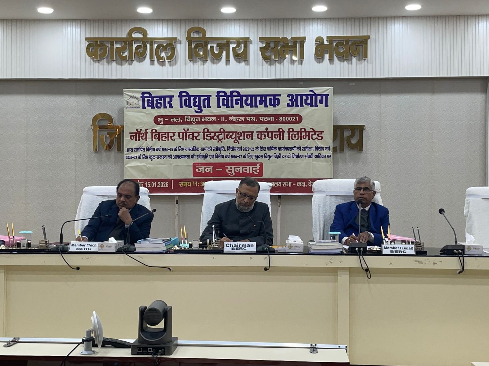 बेगूसराय समाहरणालय स्थित कारगिल विजय सभागार में वित्तीय वर्ष 2026-27 के लिए नॉर्थ बिहार पावर डिस्ट्रीब्यूशन कंपनी लिमिटेड (NBPDCL) के प्रस्तावित विद्युत दरों के निर्धारण को लेकर बिहार विद्युत विनियामक आयोग के अध्यक्ष श्री आमिर सुबहानी द्वारा जनसुनवाई का आयोजन किया गया।
