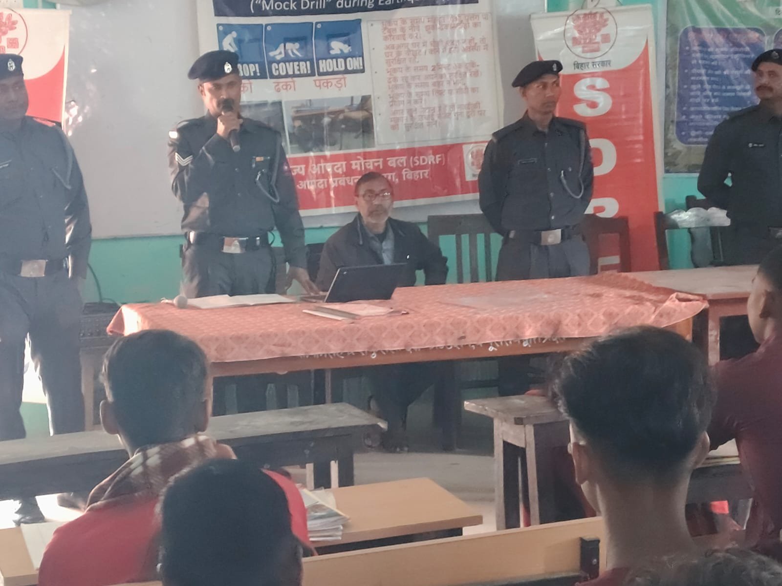 SDRF के प्रशिक्षित कर्मियों द्वारा बच्चों को भूकंप आने के कारण, उसके प्रभाव, तथा आपदा के समय घबराने के बजाय धैर्यपूर्वक सुरक्षित व्यवहार अपनाने के तरीकों के बारे में समझाया गया। “ड्रॉप, कवर और होल्ड” जैसी महत्वपूर्ण सुरक्षा तकनीकों का व्यावहारिक प्रदर्शन कर बच्चों को बताया गया कि भूकंप के दौरान एवं उसके बाद किस प्रकार स्वयं को सुरक्षित रखा जा सकता है। साथ ही, सुरक्षित स्थानों की पहचान, खुले मैदान में जाने की सावधानियां, तथा अफवाहों से बचने की सलाह भी दी गई।